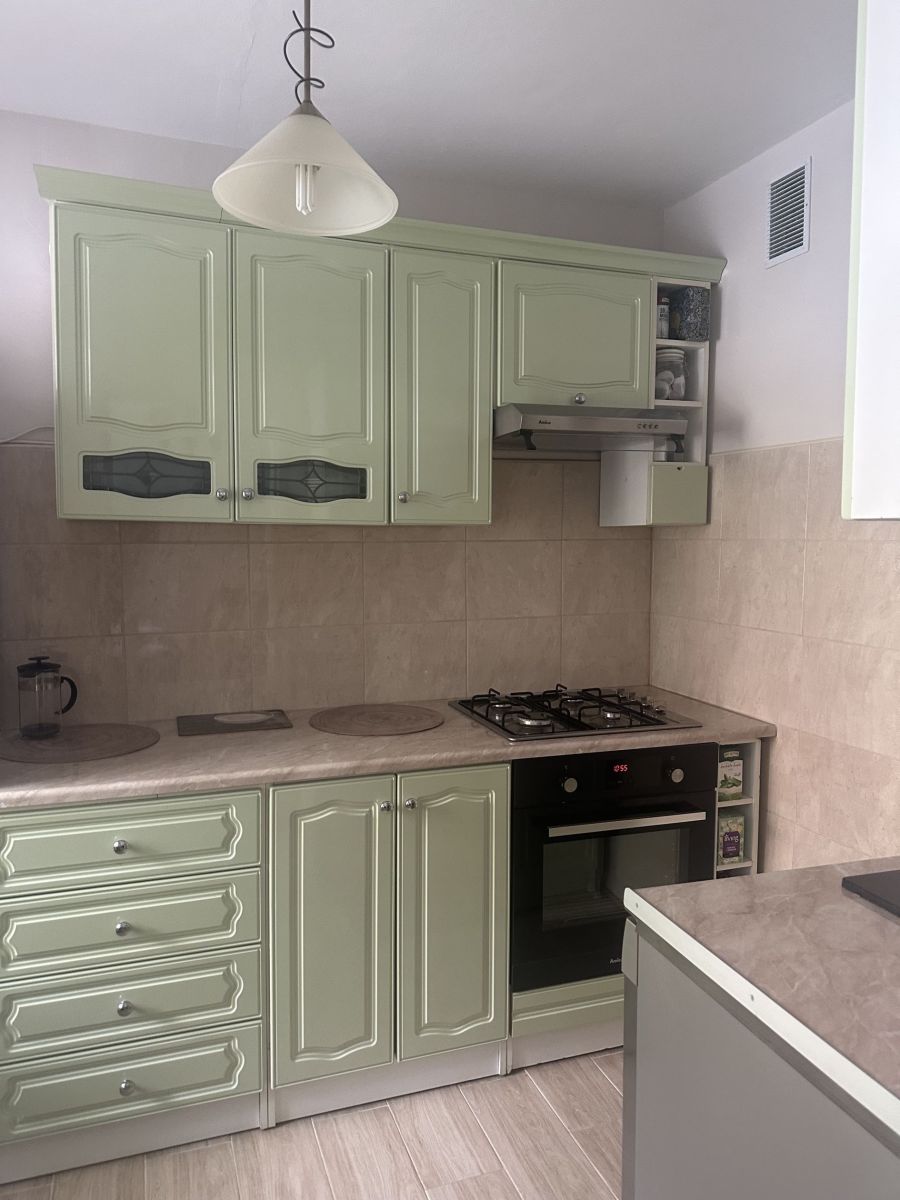 - Funkcjonalna kuchnia z meblami kuchennymi, lodówką, piekarnikiem oraz zmywarką, ułatwiająca codzienne gotowanie,